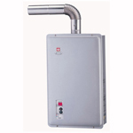 密閉強制供排氣式熱水器(FF式):指熱水器燃燒使用之空氣,以供氣風機等機械方式連接供氣管自屋外取得,廢氣經排氣管以排氣風機等機械方式強制排放至屋外,與屋內之空氣隔絕者。圖例如下:屋外式熱水器(RF式):指熱水器之供氣及排氣直接於屋外進行者,圖例如下: